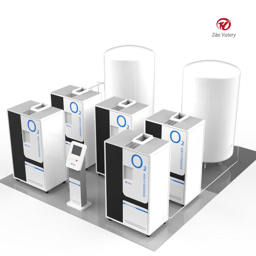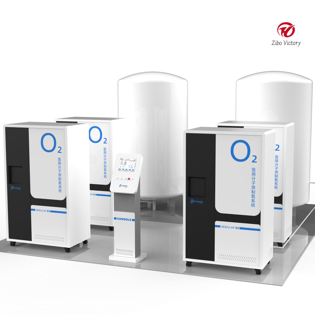 The modular medical molecular sieve oxygen production system uses the molecular sieve pressure shift adsorption (PSA) principle to separate oxygen and nitrogen in the air to produce oxygen, and provides oxygen purification treatment with all indicators in line with the air for use in each ward. The whole system is composed of several modules with different functions, each module has uniform size and specifications, and can be flexibly combined to adapt to the oxygen supply needs of different users and different occasions.